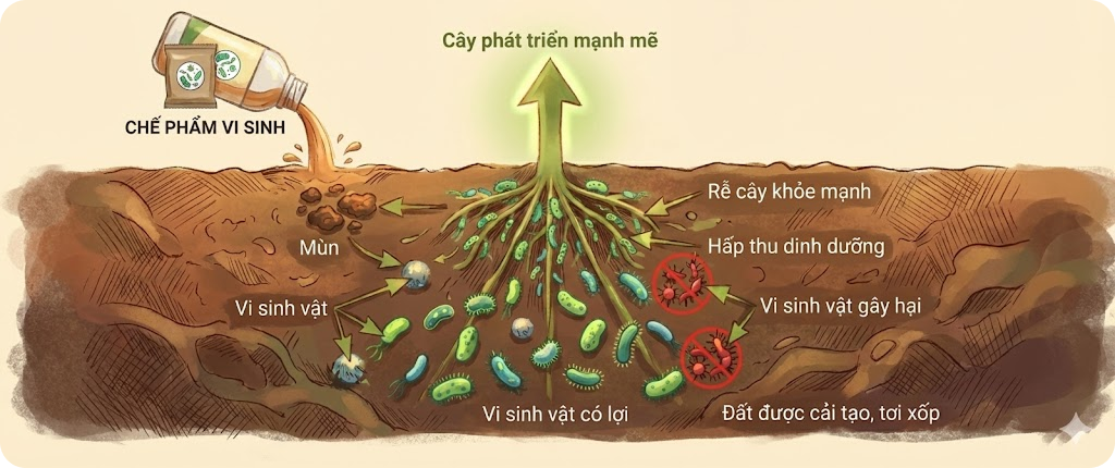 Đất tơi xốp hơn, giữ ẩm tốt, tăng cường vi sinh vật có lợi..