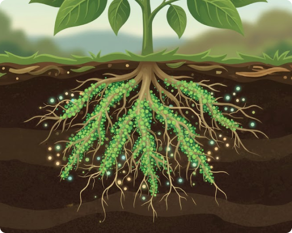 Hoạt hóa lân và kali bị cố định trong đất, tăng khả năng hấp thụ dinh dưỡng lên 25-35%.